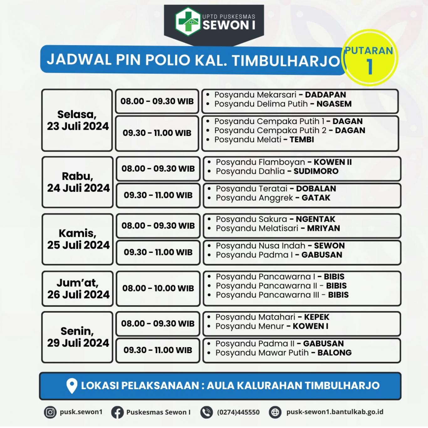 Jadwal Pin Polio di Kalurahan Timbulharjo