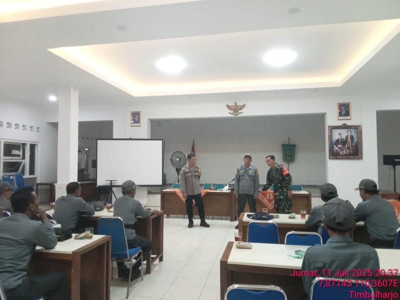 Anggota Perlindungan Masyarakat (LINMAS) Kalurahan Timbulharjo mengikuti rapat koordinasi penting di Grha Respati Kalurahan Timbulharjo pada Jumat, 11 Juli 2025. Pertemuan ini menjadi ajang strategis untuk memperkuat koordinasi dan disiplin anggota LINMAS, terutama dalam hal penertiban penggunaan seragam.