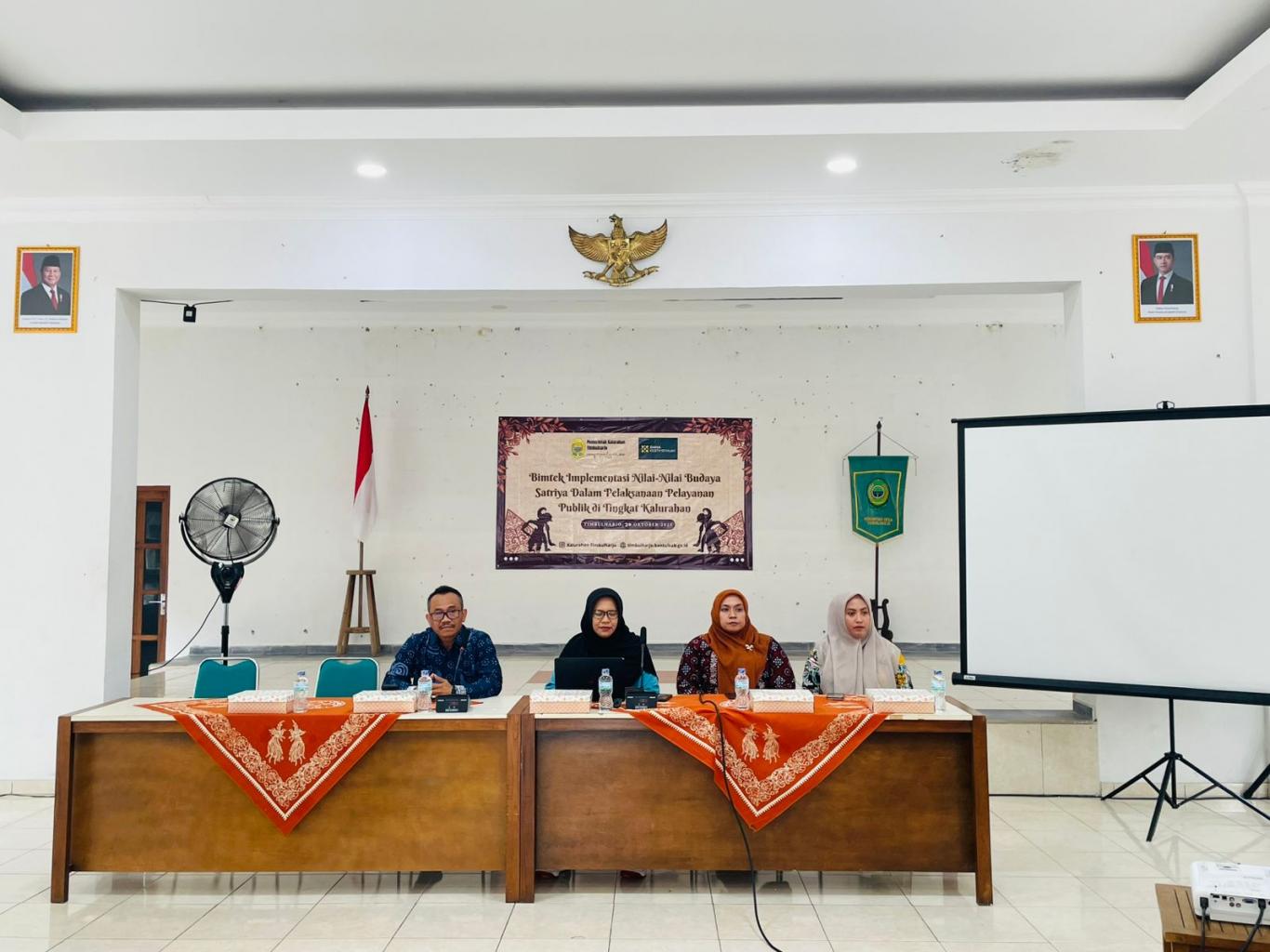 Kamis, 30 Oktober 2025 Pemerintah Klaurahan Timbulharjo mengadakan bimtek Implemetasi Nilai-Nilai Budaya Satriya dalam Pelaksanaan Pelayanan Publik di Tingkat Kalurahan. Narasumber dalam bimtek ini Ibu Rani Dwi Hapsari, A.Md,S.ST.Ars.,MM.,CLNP. Bertempat di Grha Respati Kalurahan Timbulharjo. Turut hadir dalam acara bimtek ini Lurah beserta pamong kalurahan. Bimtek Budaya Satriya adalah bimbingan teknis (bimtek) yang diselenggarakan untuk menanamkan dan menginternalisasi nilai-nilai Budaya Pemerintahan Satriya pada aparatur pemerintah, khususnya di lingkungan Daerah Istimewa Yogyakarta dan kabupaten/kotanya. Budaya ini merupakan pengembangan dari falsafah Hamemayu Hayuning Bawana dan memiliki dua makna: sebagai watak ksatria (sawiji, greget, sengguh, ora mingkuh) dan singkatan dari S.A.T.R.I.Y.A (Selaras, Akal Budi Luhur-jatidiri, Teladan, Rela Melayani, Inovatif, Yakin dan percaya diri, Ahli-profesional).